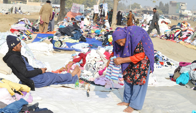 This old woman was seen and captured in the pre-owned winter-stuff market during my photography tour to Dera Ghazi Khan (45Km from Jampur, my hometown). She was finding the best and the most economical stuff for her grandchildren. She had come from city outskirt and belongs to Wadani clan of a Baloch tribe. The market is overwhelmed with the imported pre-owned warm clothing, toys, kitchen paraphernalia, some hardly useable yet repairable electronics/gadgets and some miscellaneous household items. The stalls are in a vast government land in the centre of the city, in the wing of main bazar and most of them are run by the Pakhtun refugees and others migrated from the coldest parts of Pakistan.
